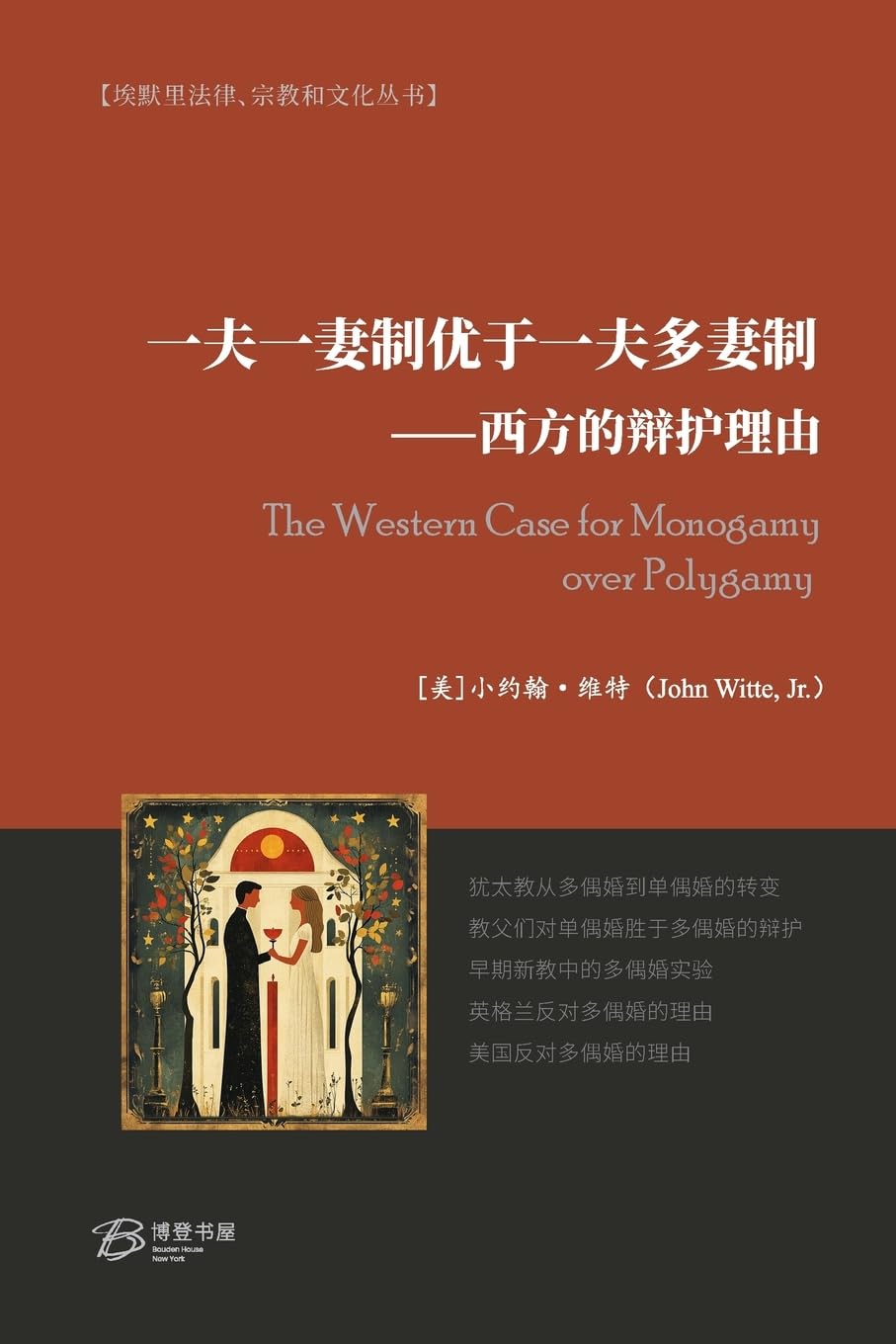 这本书书不仅是一部学术巨著,而且具有巨大的实用价值,因为这些战线可能会出现,它有助于描述、解释和评估这些战线两侧可能出现的论点。约翰-维特对细节一丝不苟,文献资料(尤其是司法材料)丰富,他在这部令人叹为观止的历史巨著中仔细解读了一系列非同寻常的资料......。书中有力地阐述了他们自己对:一夫一妻制、神圣制度、一夫一妻制婚姻的现代理解,以及这一切对夫妻忠诚、平等和在家庭生活中培养子女的意义。